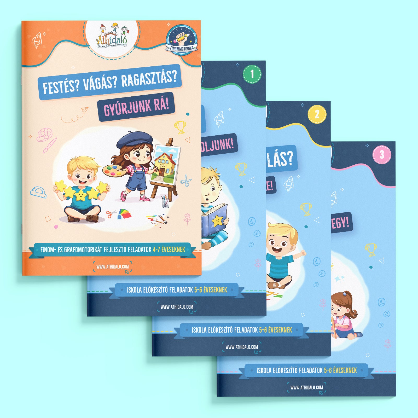 A Finommotorika Különkiadás (4–7 éveseknek) és a Kezdő Szett (5–6 éveseknek) együtt dolgozik azon, hogy játékos, rövid feladatokkal felpörgesse a finom- és grafomotorikát (szép vonalvezetés, biztos ceruzafogás), közben építse a figyelmet és feladattartást, a szabálykövetést és a számfogalom alapjait. Gyors sikerélmények, magabiztos iskolakezdés – hogy a „meg tudom csinálni” érzés mindennapossá váljon.