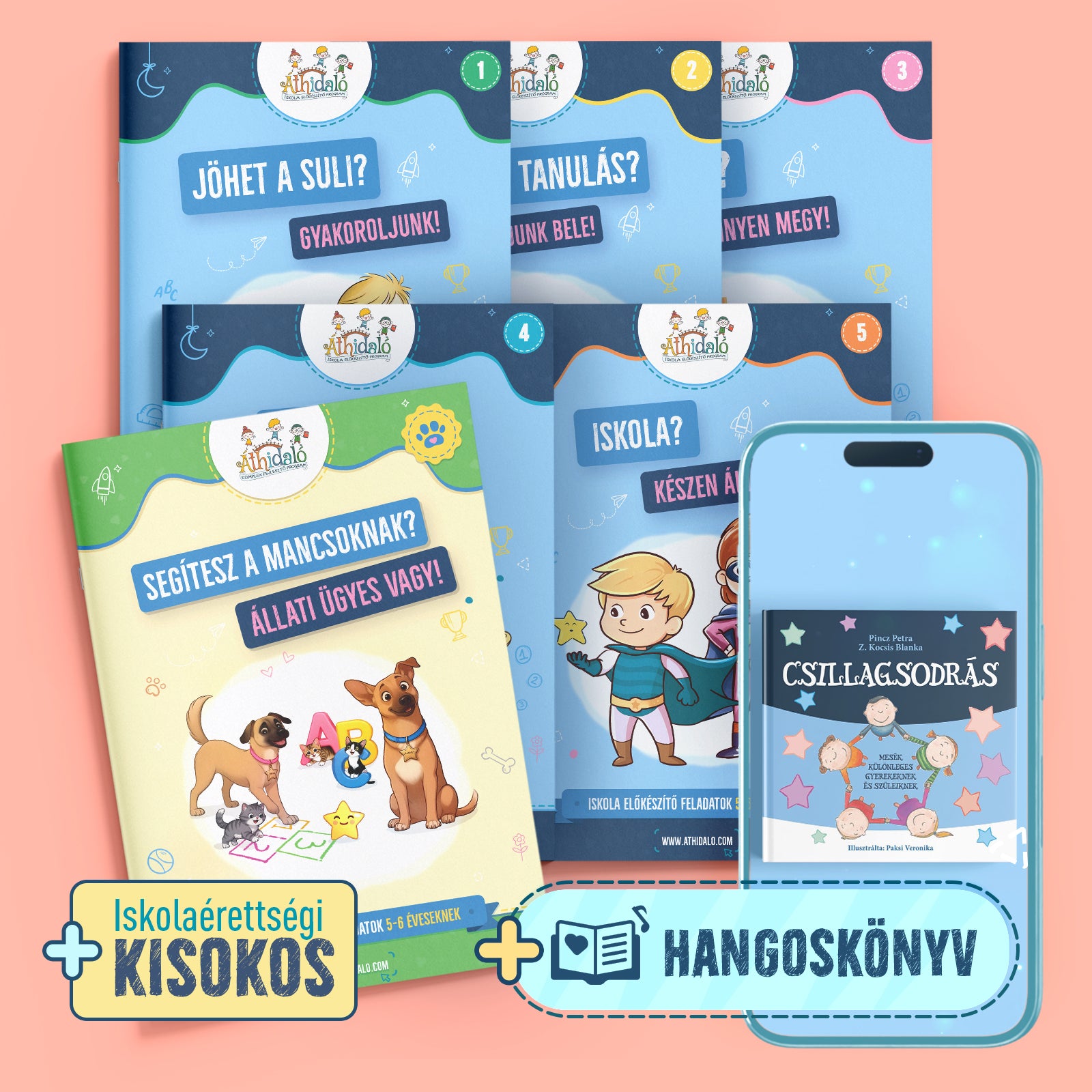 Hangulatos, mancsos családi csomag a közös élményekhez: a Teljes Szett stabil alapot ad az iskolára való felkészüléshez, a Mancsos Füzet állatos feladatai új lendületet visznek a gyakorlásba, a Csillagsodrás Hangoskönyv pedig érzelmi intelligenciát fejlesztő mesékkel nyit beszélgetést különleges gyermekekről és szüleikről.